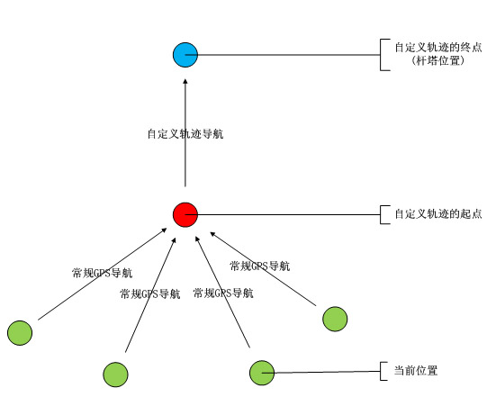 自定义轨迹为用户自主采集并定义的行进路线,此段路可能不存在于现有的GPS导航引擎,系统可以将自定义路线直接显示在电子地图上,并在电子地图中实时标注用户的当前位置,用户参照自己的当前位置及自定义的轨迹线路行进至杆塔位置。